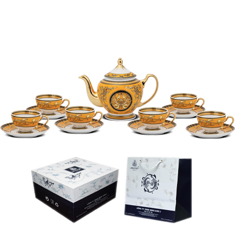 BỘ ẤM CHÉN DÁT VÀNG CAO 24K CAO CẤP QUÀ TẶNG ĐỐI TÁC