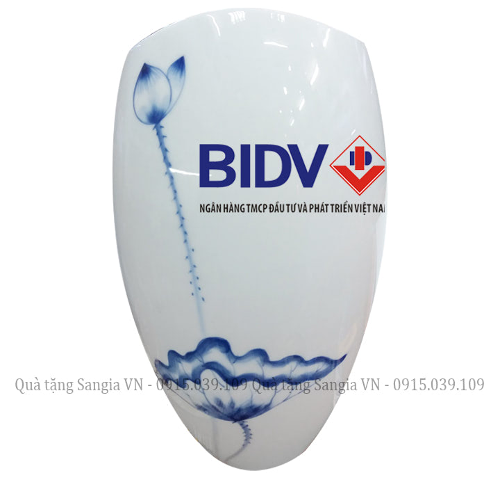 MẪU LỌ HOA GỐM SỨ BÁT TRÀNG MIỆNG CÁ VẼ SEN XANH IN LOGO BIDV