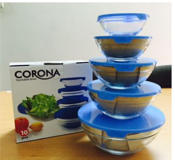 THỐ THỦY TINH 5 MÓN, CÓ NẮP HỘP MÀU INDO